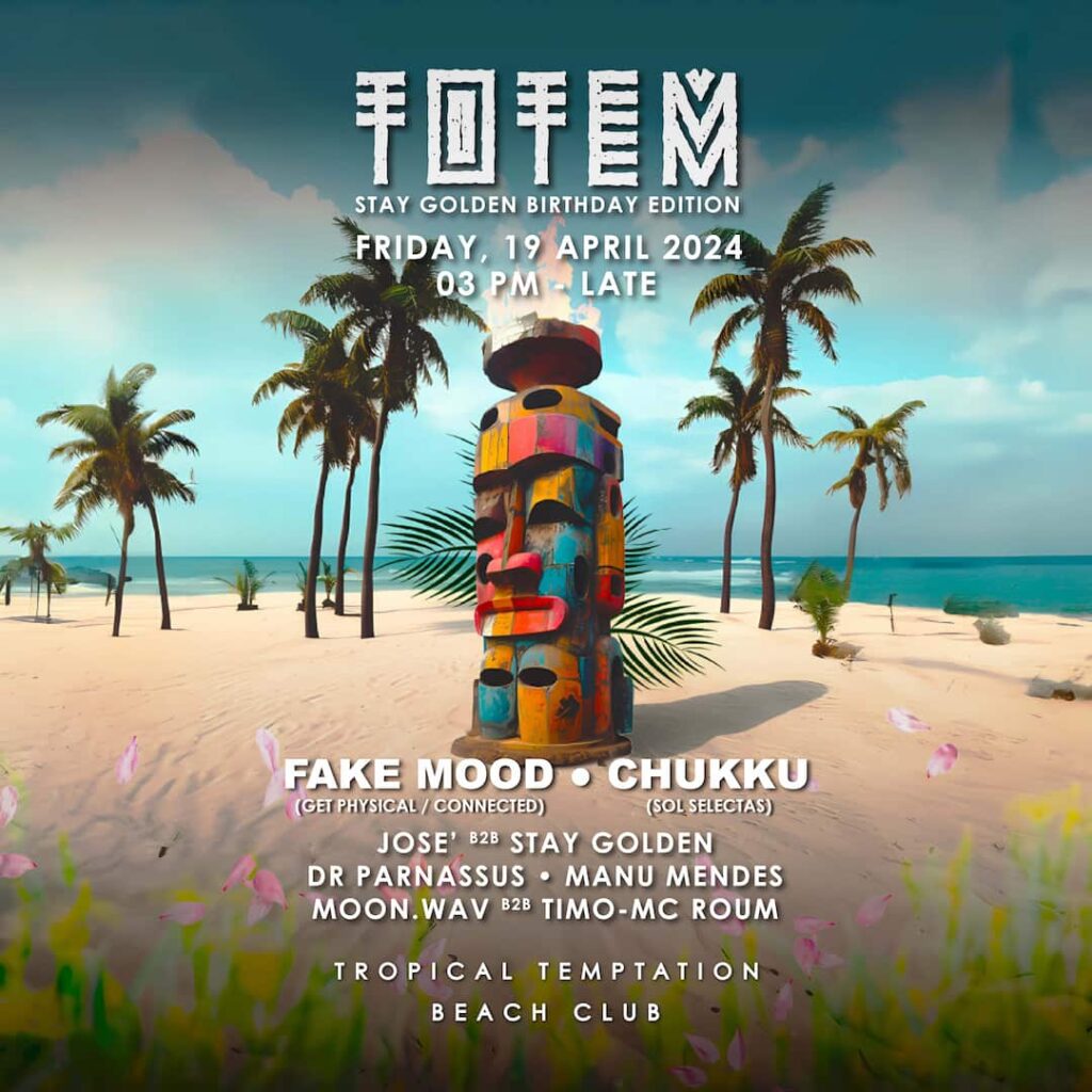 On Friday, April 19th, 2024, brace yourself for the ultimate beach party experience as Tropical Temptation and TOTEM SOCIETY come together to present the STAY GOLDEN Birthday Edition. With the festivities kicking off at 3 PM, get ready to immerse yourself in an electrifying celebration like no other, set against the pristine white sands of